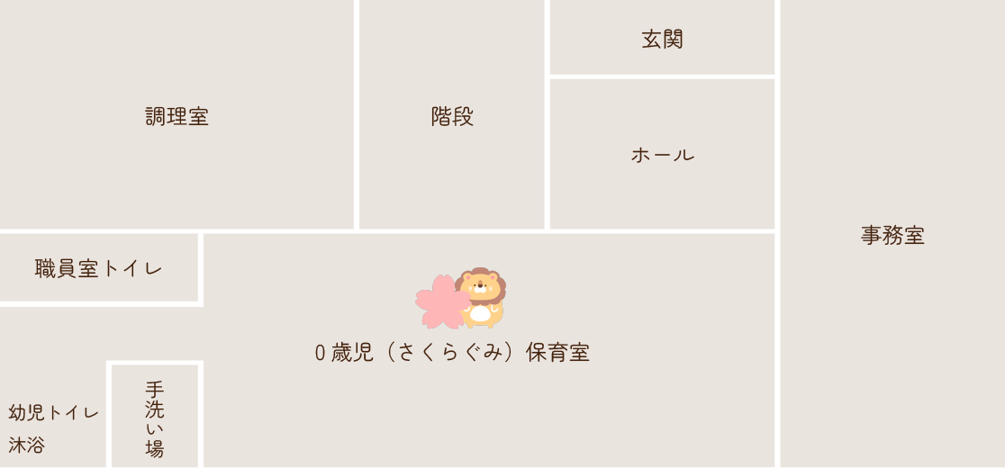 | 園児数 | 19人 (0歳児:6名、 1歳児:6名、 2歳児:7名) |